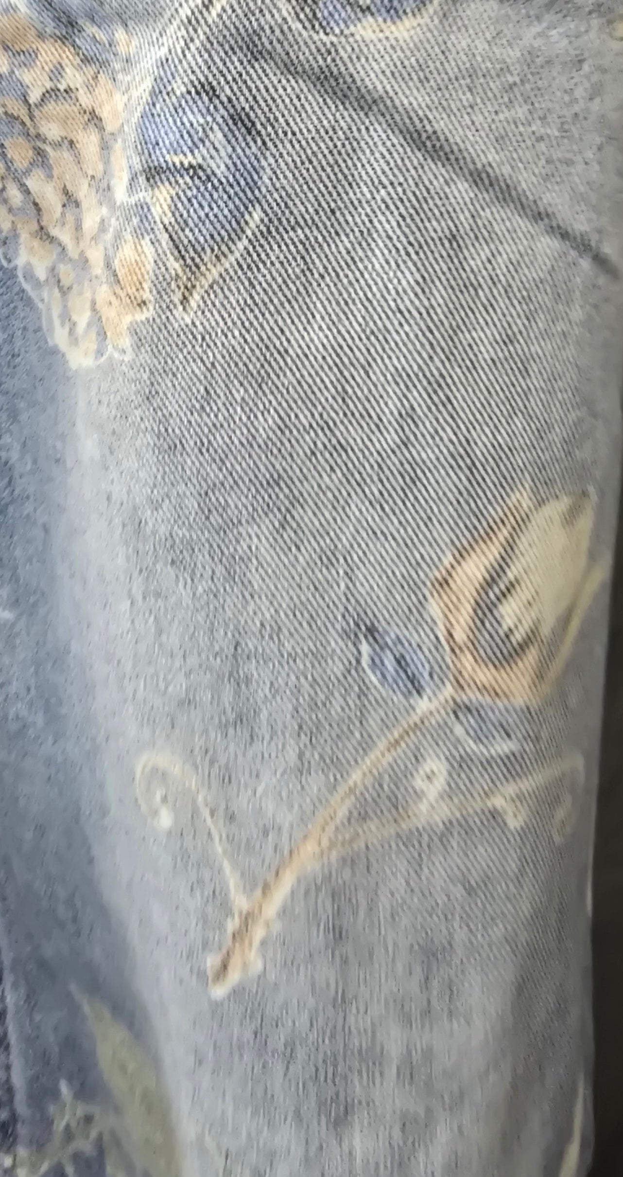 Deze lichtblauwe jeans met subtiele bloemenprint is een echte eyecatcher voor je garderobe. De zachte, vintage wash gecombineerd met het botanische patroon geeft de broek een frisse, romantische uitstraling. Perfect om casual te dragen, maar ook leuk te stylen met een blouse of blazer voor een meer geklede look.