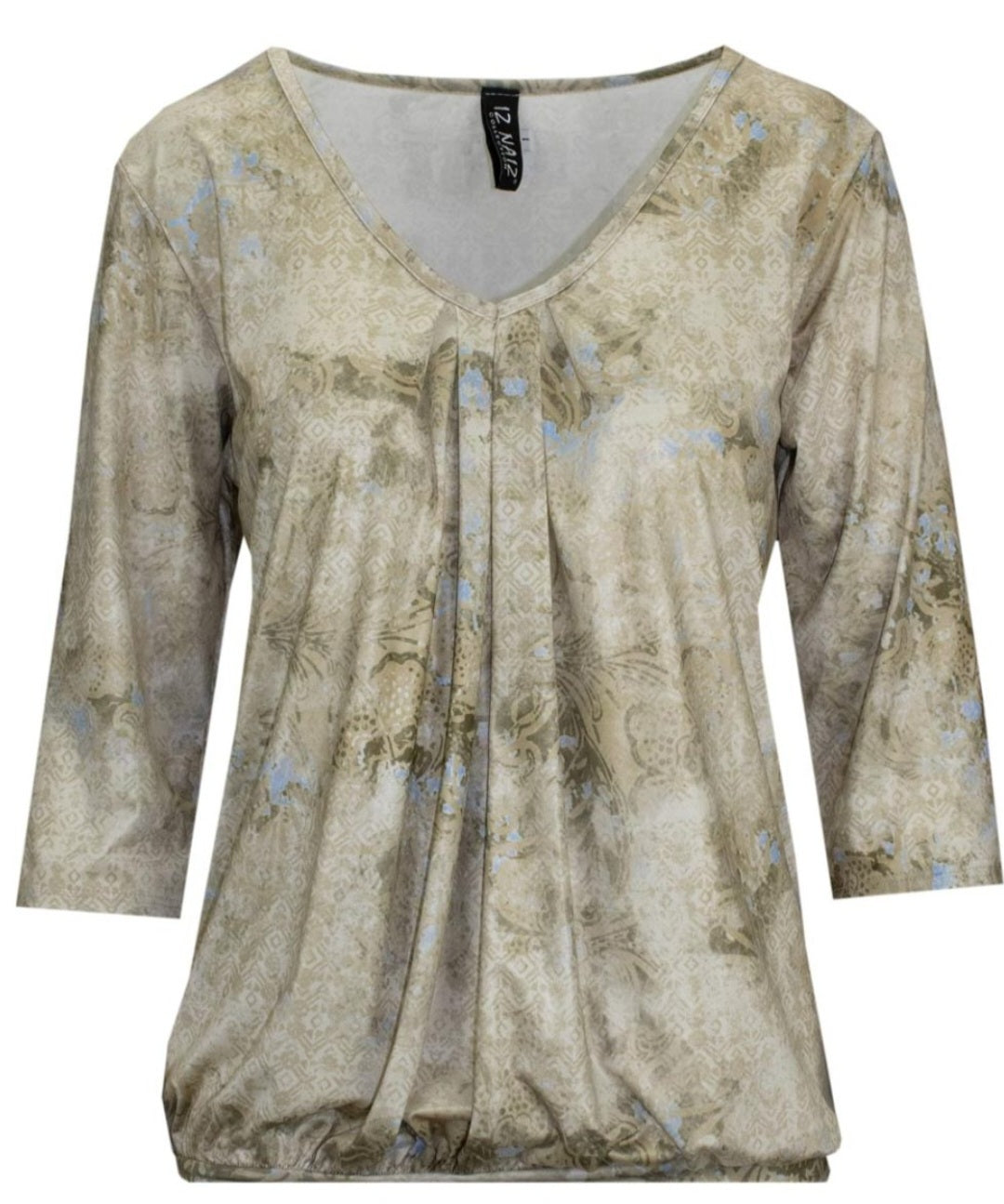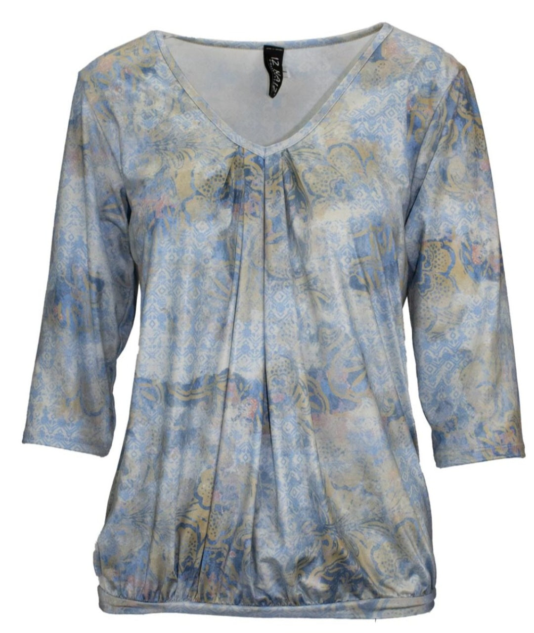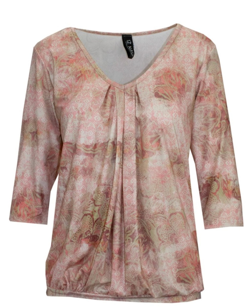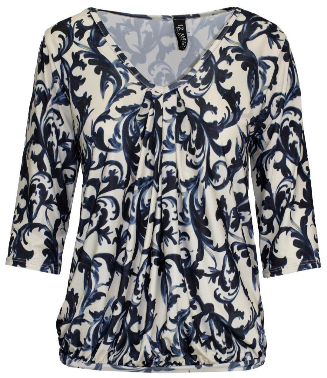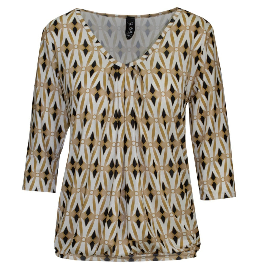 Deze elegante top straalt een zachte, vrouwelijke charme uit De V-hals met subtiele plooidetails aan de voorzijde zorgt voor een flatterende en luchtige pasvorm. De driekwart mouwen geven de top een tijdloze uitstraling en maken hem perfect voor elk seizoen.